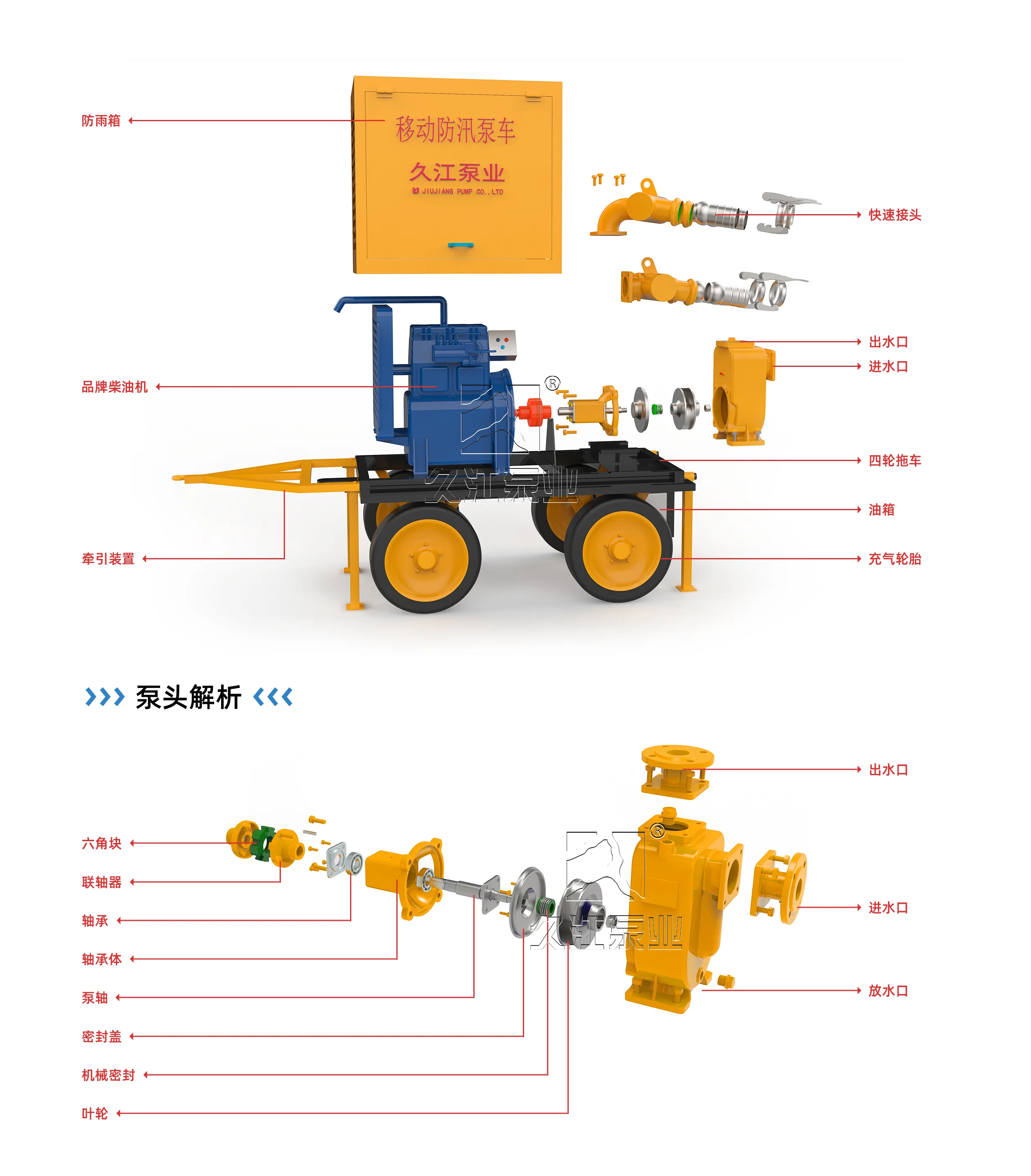 柴油機式自吸排污泵以柴油機動力直接驅動 (采用國內知名品牌柴油機可根據用戶要求選擇),集自吸和無堵塞排污于一身,既可像一般清水自吸泵那樣不需安底閥,不需引灌水、又可抽吸含有大顆粒固體塊長纖維的污物、沉淀物廢礦雜質、糞便處理及一切工程污水物,有效減輕工人勞動強度,而且使用、移動、安裝方便、極少維修、性能穩定。配合柴油機的可移動性,不需鋪設電線的原因,更是提高了該泵的靈活性,特別適合防汛抗旱作業。