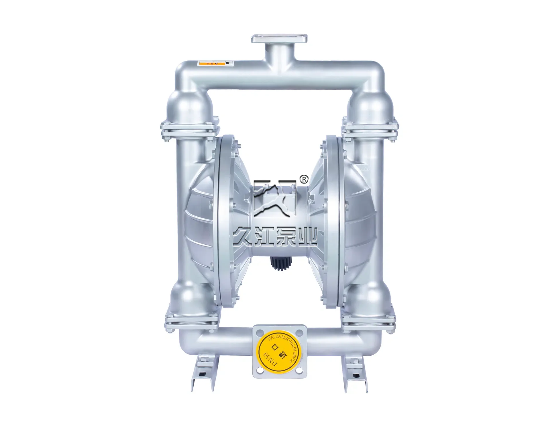 在泵的兩個對稱工作腔中,各裝有一片有彈性的隔膜,聯桿將兩塊隔膜結成一體。壓縮空氣從泵的進氣接頭進入配氣閥后,推動兩個工作腔內的隔膜,驅使聯桿聯接的兩塊隔膜同步運行。與此同時,另一工作腔中的氣體則從其隔膜的背后排出泵外。一旦到達行程終點,配氣機構則自動地將壓縮空氣引入另一工作腔,推動隔膜朝相反方向運動,這樣就形成了兩個隔膜的同步往復運動。