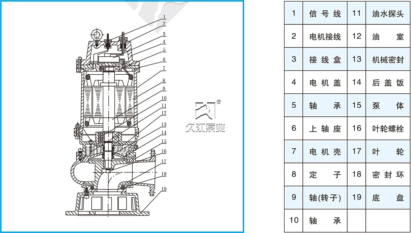 2.無內自流循環冷卻系統的泵,電機部份露出液面不超過1/2。