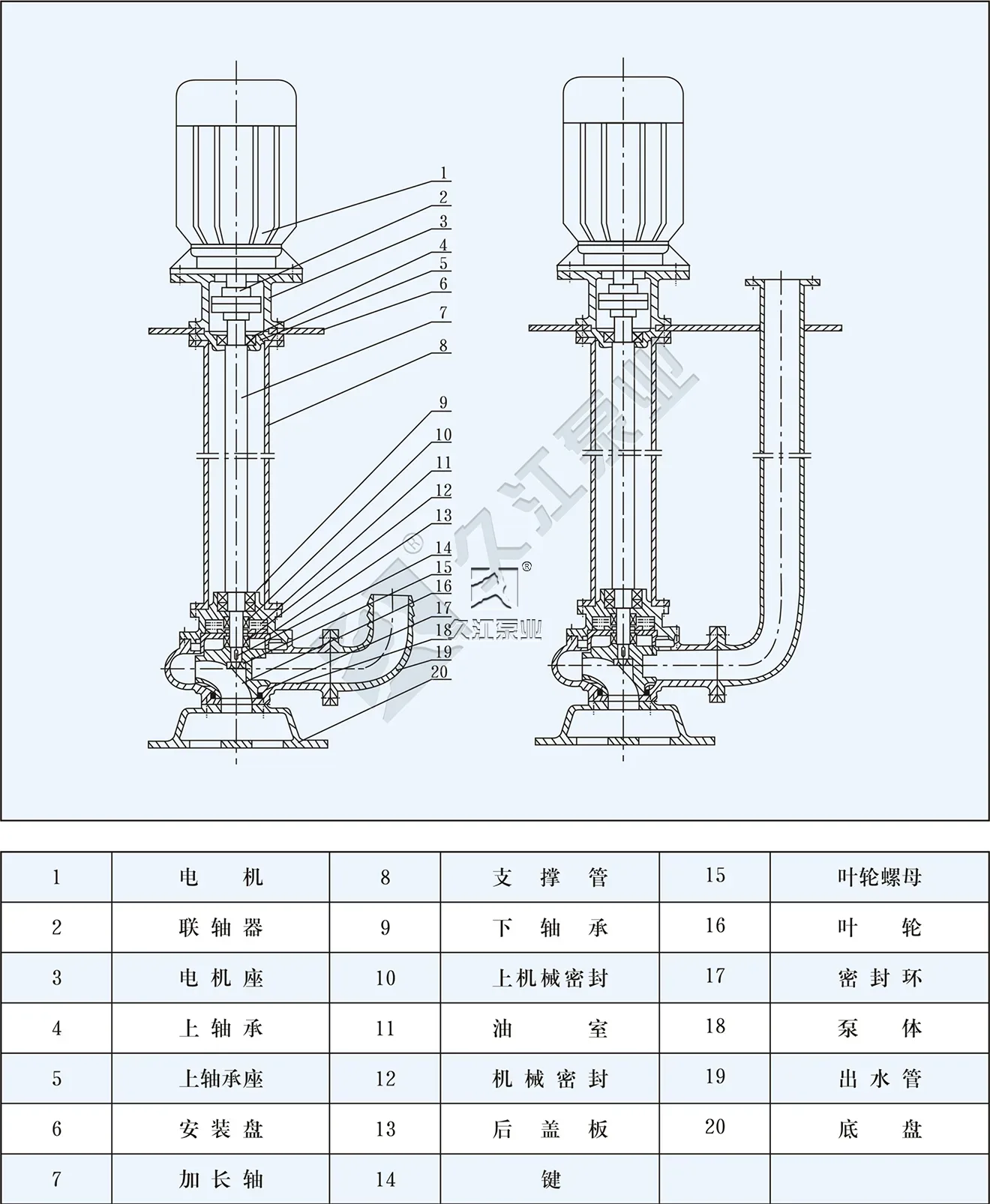 9、泵有單管安裝和雙管安裝兩種,支承件有圓盤和方盤安裝。