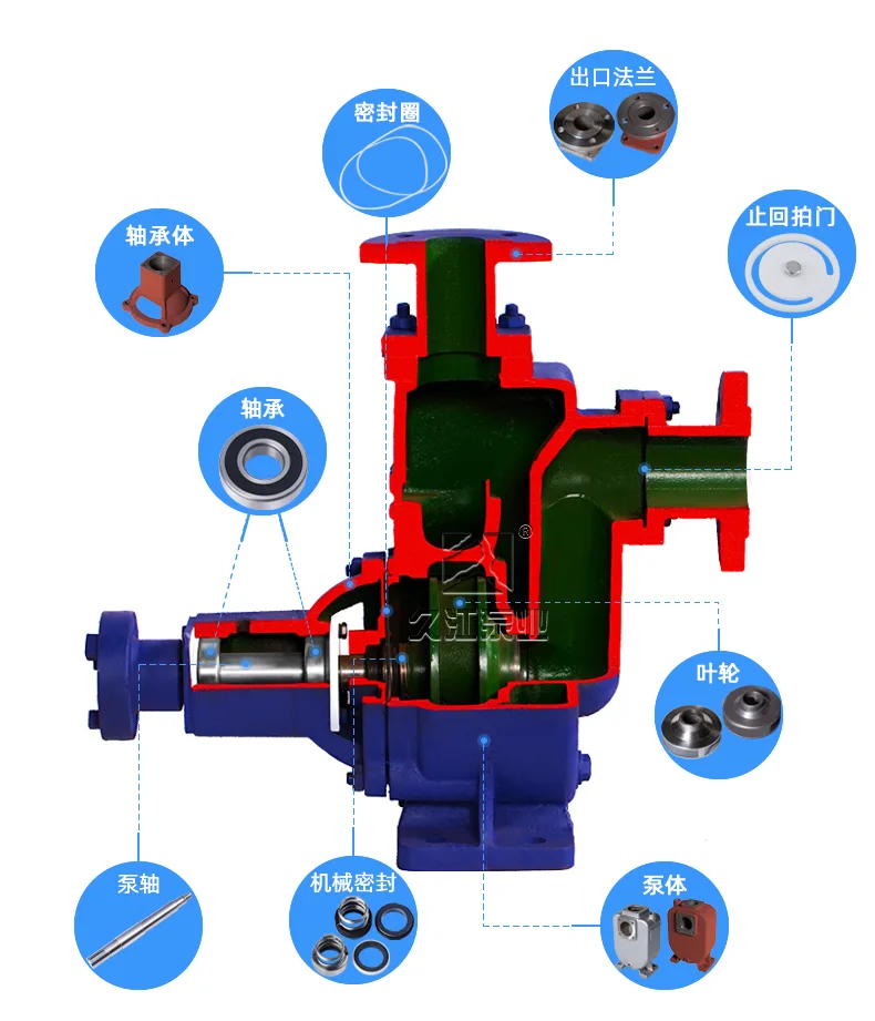 ZW系列自吸式無堵塞排污泵,主要由泵體、葉輪、后蓋、機械密封、泵軸、軸承座、進口閥、氣液分離管、加水閥門、進、排接管等組成。